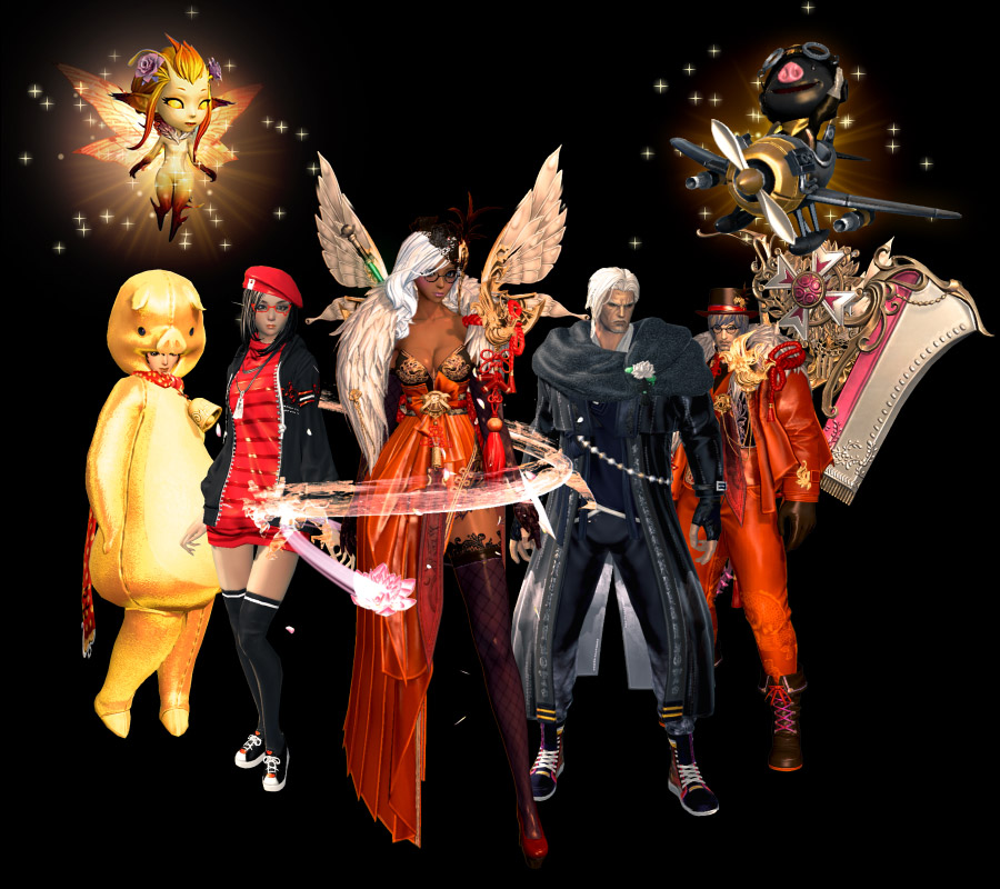 Cosmetics: Equinox Costume, Adornment & Hair, Sightseer Costume, Hat & Glasses, Razzle Dazzle Costume, Hat, Glasses, & Wings, Golden Piglet Costume & Hat, питомец Pixie Pet, питомец Flying Pig Pet, сундук Lotus Illusion Weapon Chest, сундук Fable Illusion Weapon Chest, Sealed Lotus Skill Illusion, крылья Sapphire Wings, крылья Skybloom Wings, Carnation.